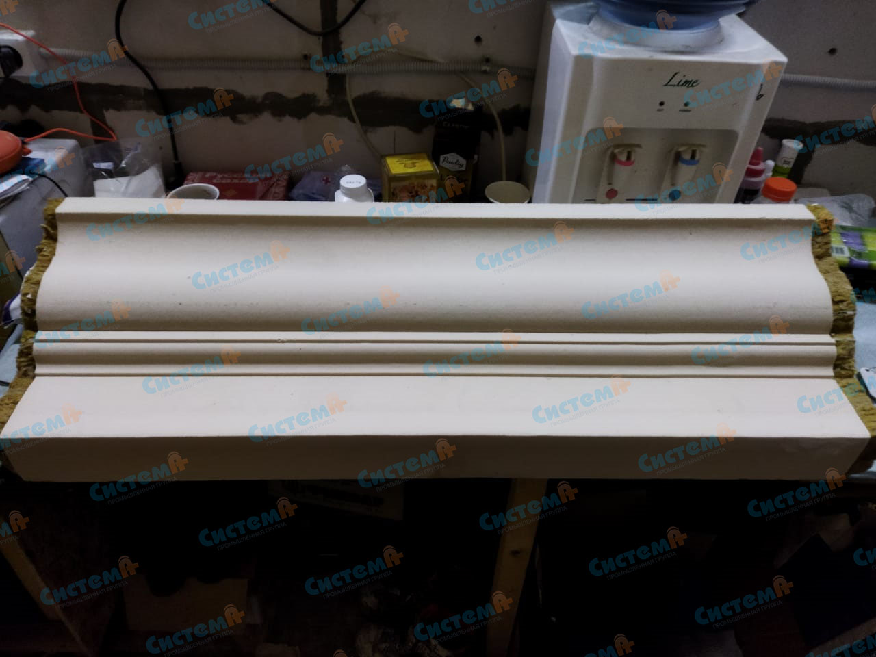 После того, как эластичный состав высох, мы отправили прототип карниза на проверку заказчику. Ему понравился молочно-белый цвет и гладкая фактура покрытия. Он согласовал производство полноценной партии элементов для своего проекта.